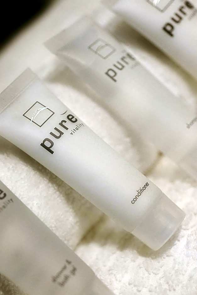 This modern room features a private bathroom with free toiletries. It also includes a flat-screen TV, kettle and a refrigerator.